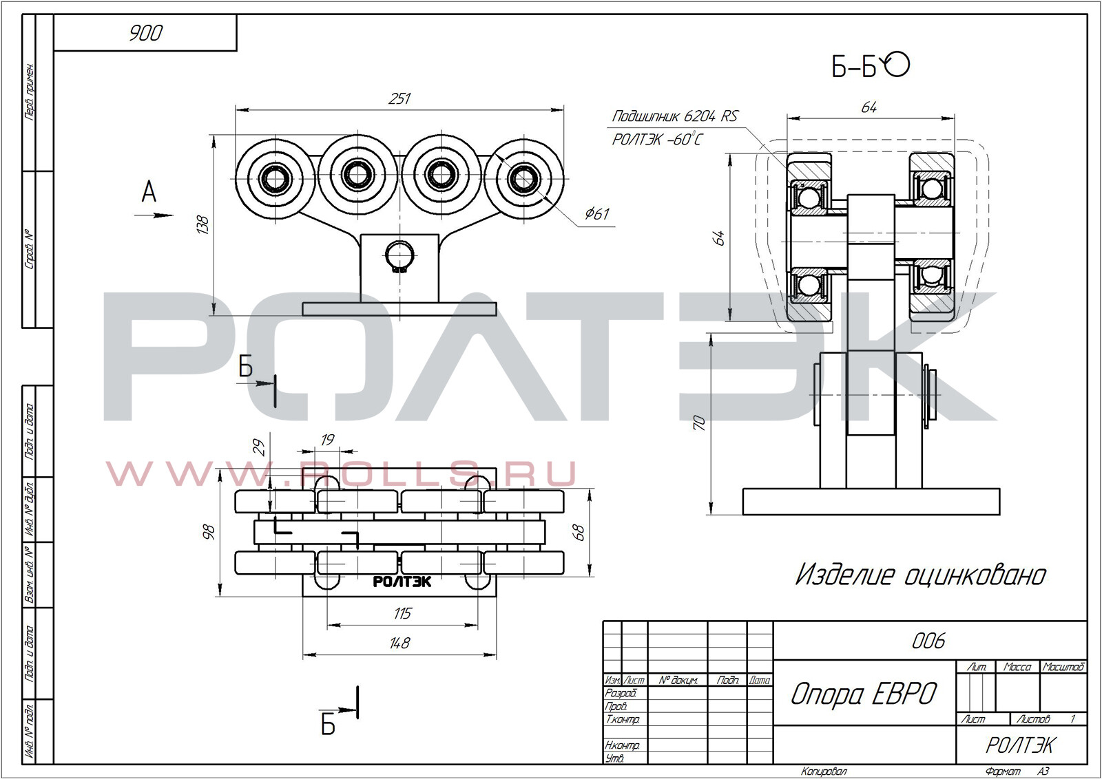 В комплекте балка 6 м, опоры роликовые 2 шт, ролик концевой 1 шт, ловитель верхний составной и нижний, кронштейн с поддерживающими роликами (регулировочные пластины в стоимость не входят)
