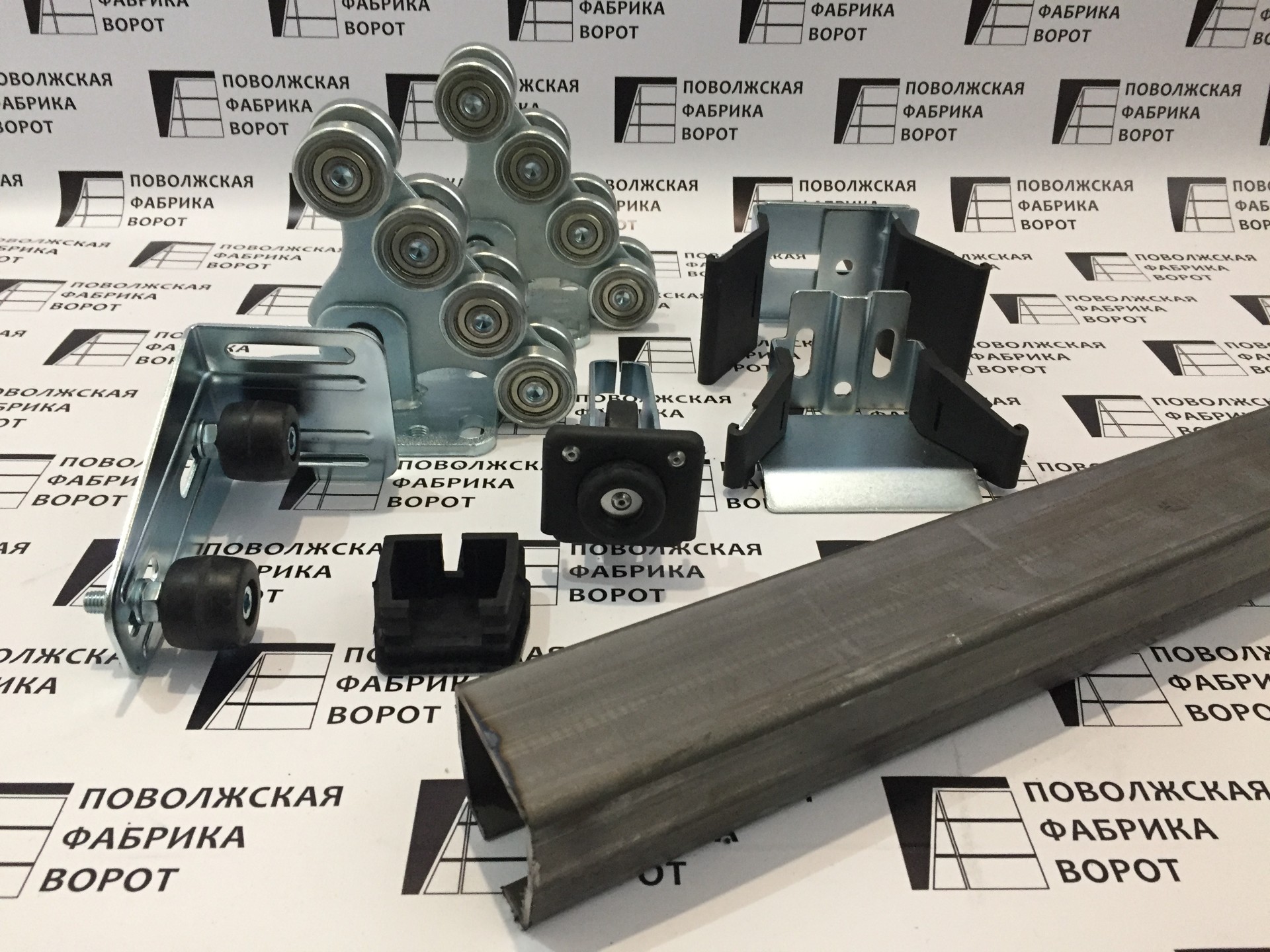 В комплекте балка 6 м , опоры роликовые 2 шт, ролик концевой 1 шт, ловитель верхний составной и нижний, кронштейн с поддерживающими роликами (регулировочные пластины в стоимость не входят)