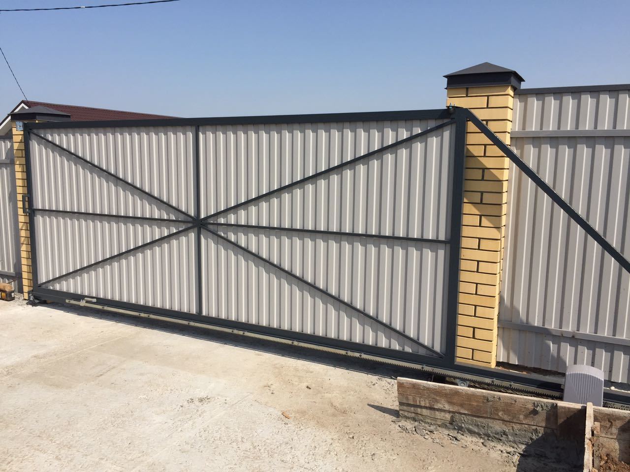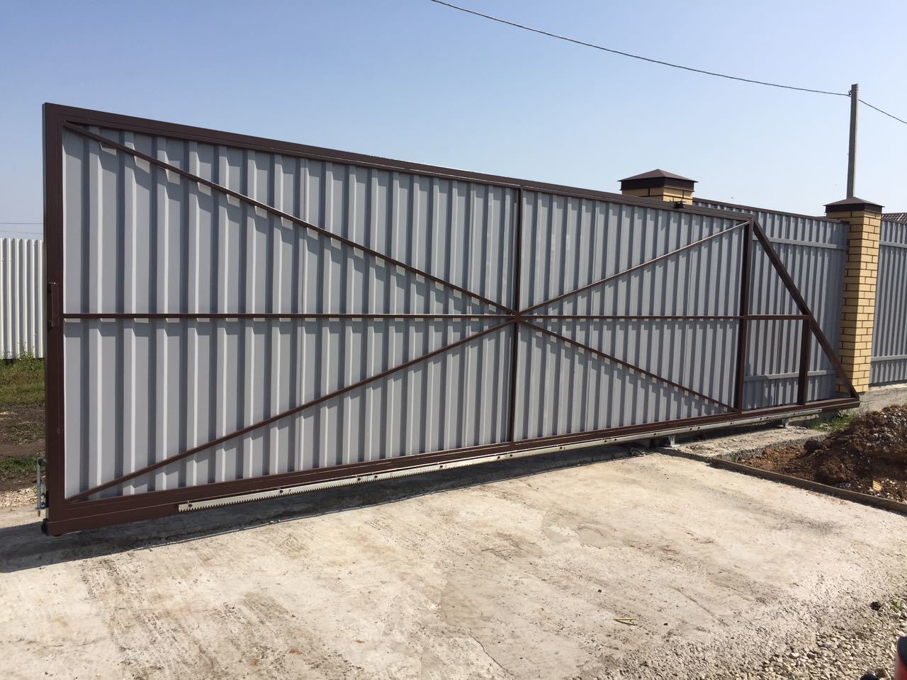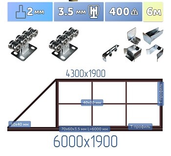 Откатные ворота 6000*1900 из Т-профиля 2мм "Собери сам" и комплектующих Фурнитех с направляющей 6м нa проем 4000*2000.